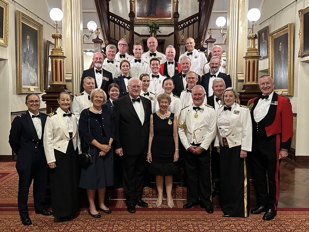 Front Row (L-R) FLGOFF (AAFC) Lizzie Miller, LCDR Kate Traill, Mrs Sandy Rush, Mr Dennis Wilson, Her Excellency, RADM Jack Rush, CAPT Felicity Rogers, Col Michael Miller